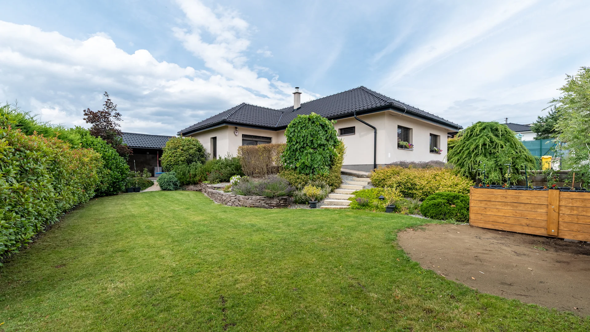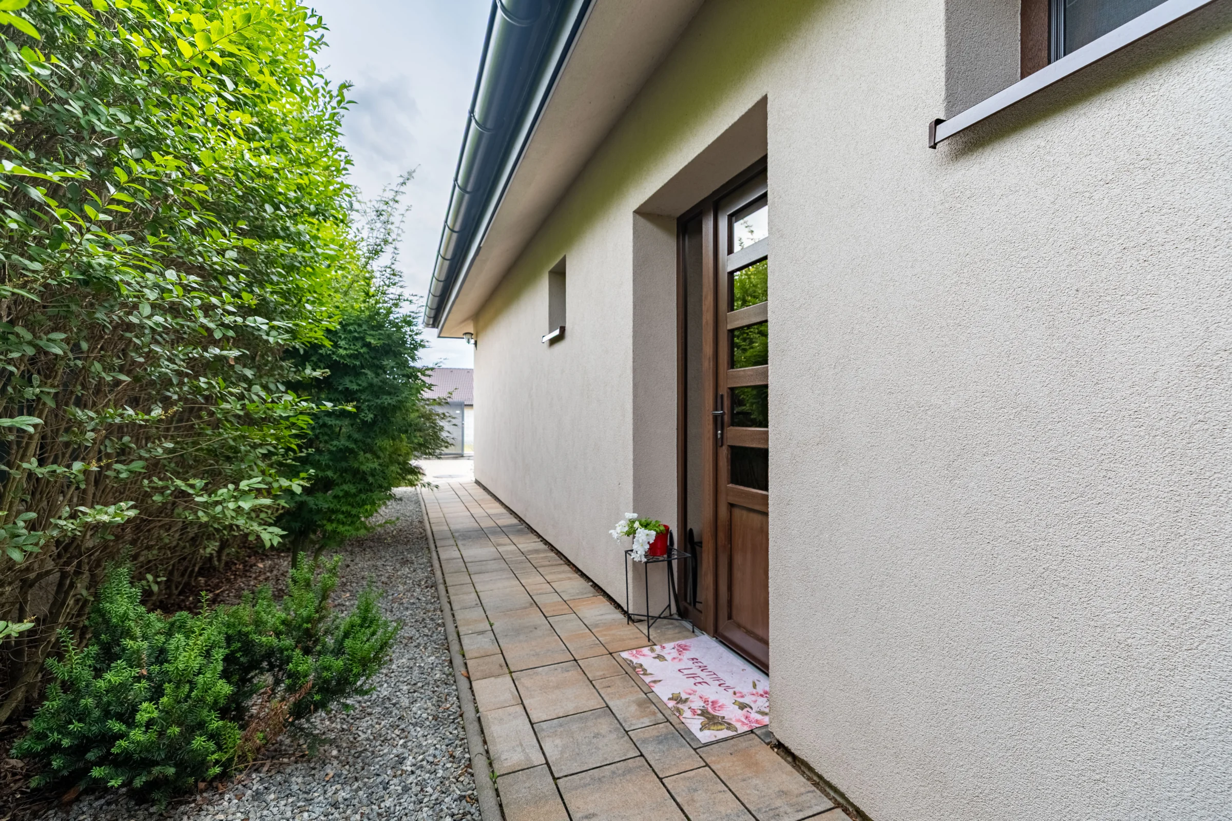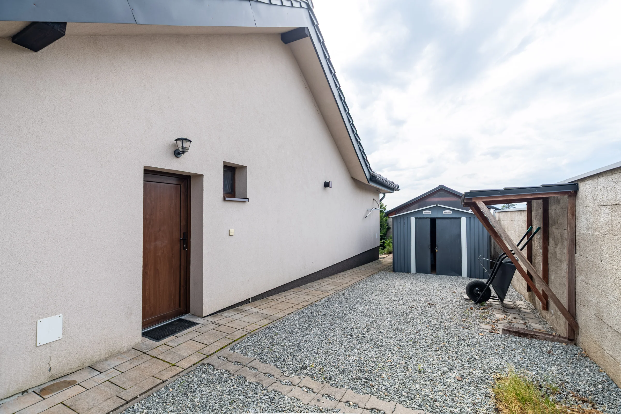 Exteriér domu je vkusne a funkčne upravený. Prístup zabezpečuje spevnená cesta zo zámkovej dlažby a na pozemku je dostatok miesta na parkovanie viacerých vozidiel. Nechýba terasa, altánok, vyvýšené záhony na pestovanie ani udržiavaná zelená plocha, ktorú je možné využiť rôznymi spôsobmi – napríklad na oddych, bazén či iné voľnočasové aktivity. Záhrada je vybavená zavlažovacím systémom, ktorý zjednodušuje údržbu exteriéru.