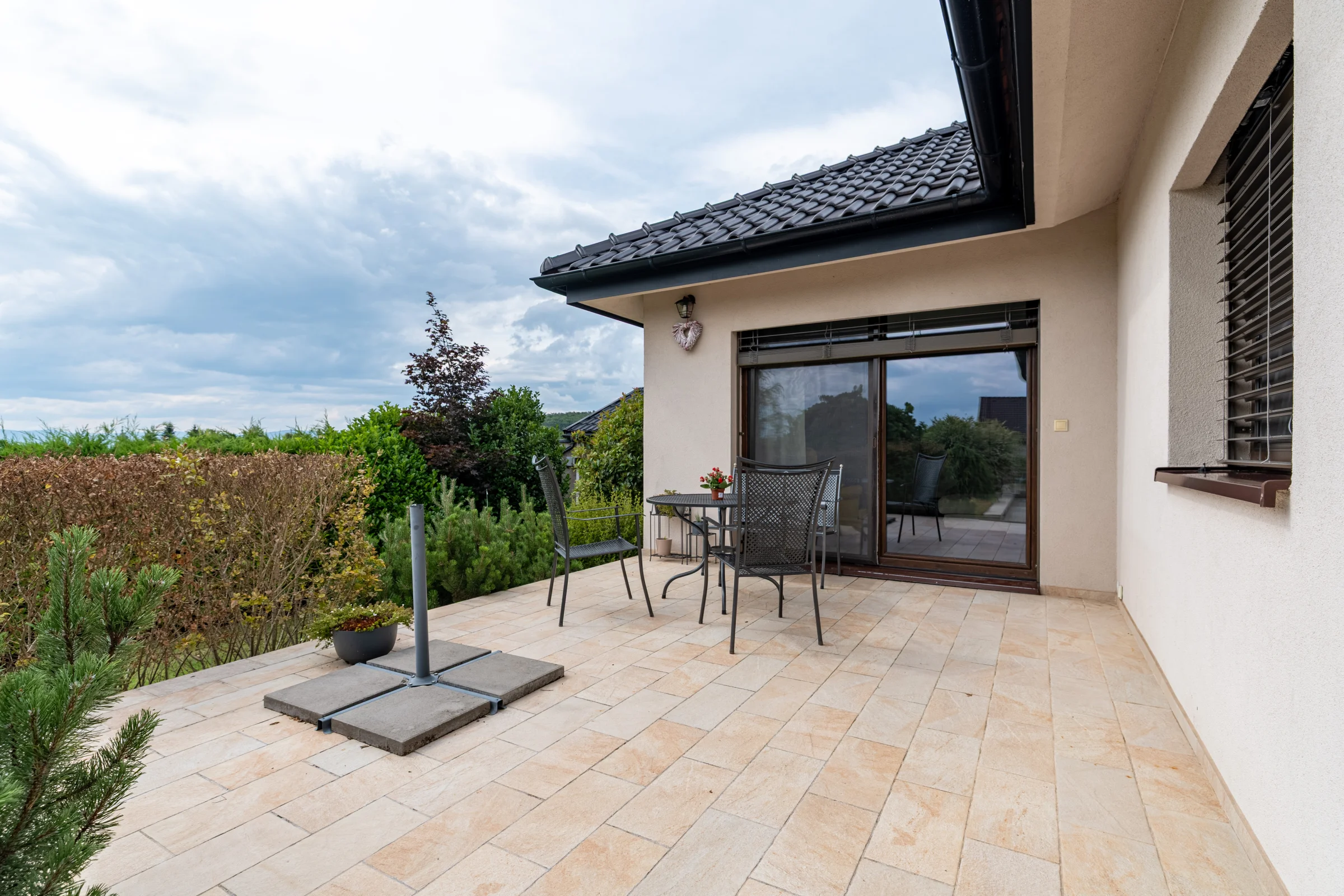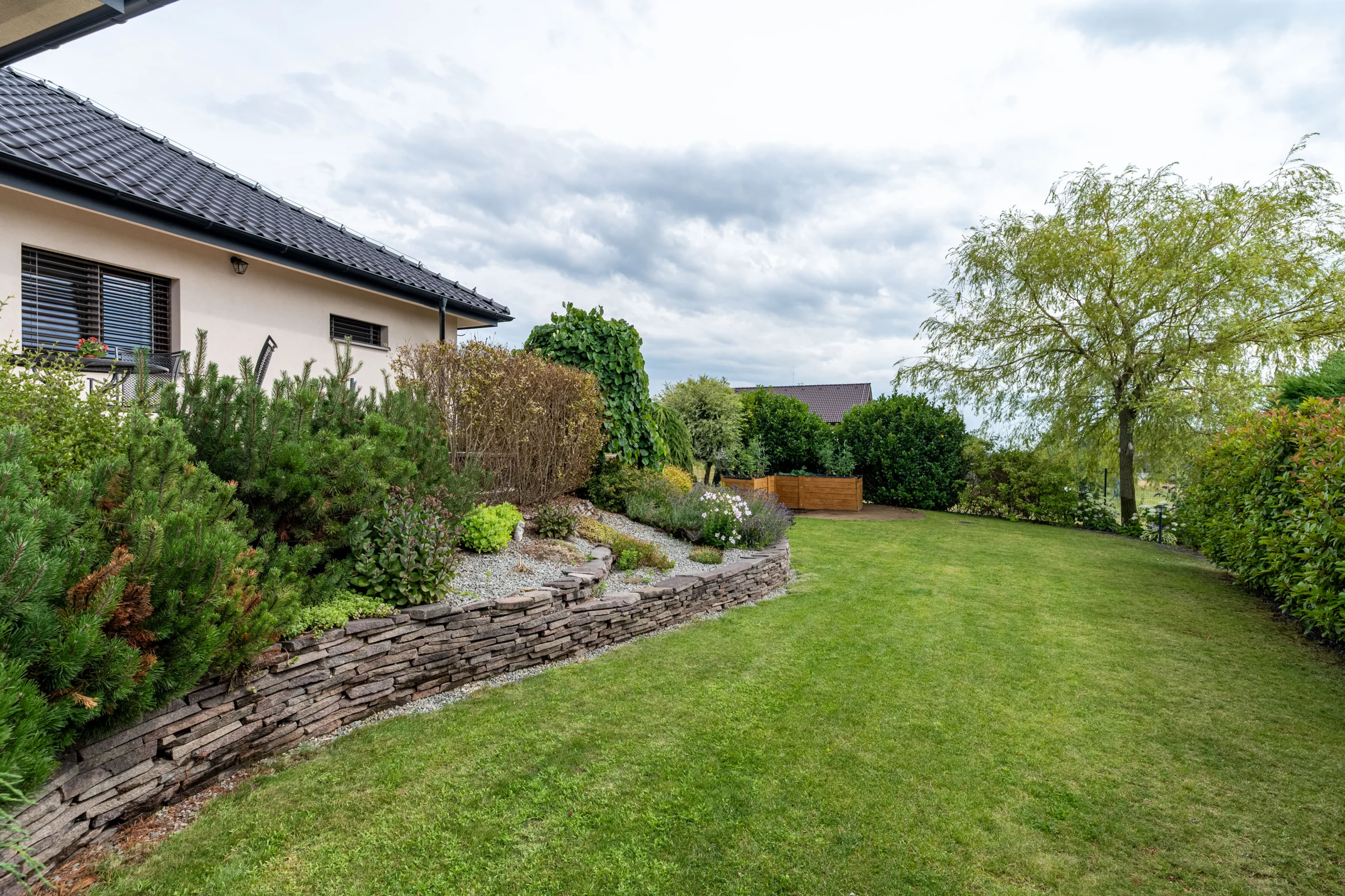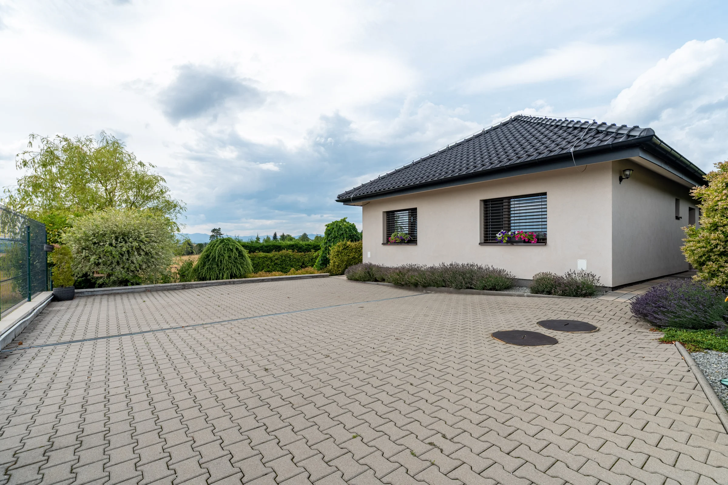 Exteriér domu je vkusne a funkčne upravený. Prístup zabezpečuje spevnená cesta zo zámkovej dlažby a na pozemku je dostatok miesta na parkovanie viacerých vozidiel. Nechýba terasa, altánok, vyvýšené záhony na pestovanie ani udržiavaná zelená plocha, ktorú je možné využiť rôznymi spôsobmi – napríklad na oddych, bazén či iné voľnočasové aktivity. Záhrada je vybavená zavlažovacím systémom, ktorý zjednodušuje údržbu exteriéru.