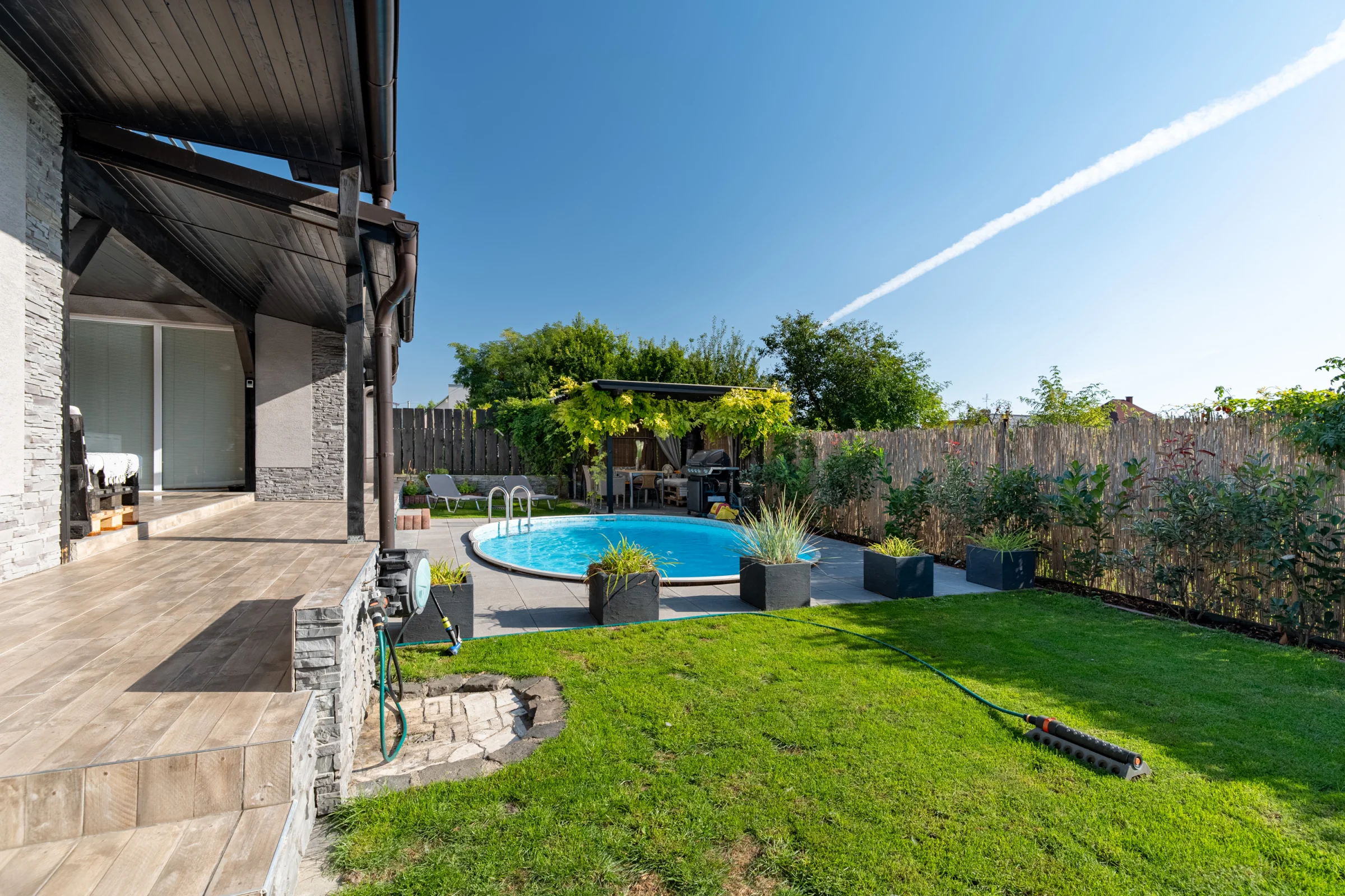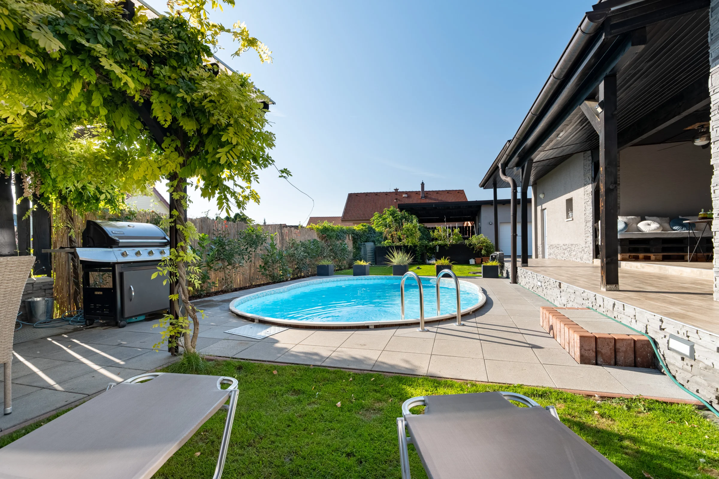 - Bazén s vonkajším posedením na peknom usporiadanom pozemku