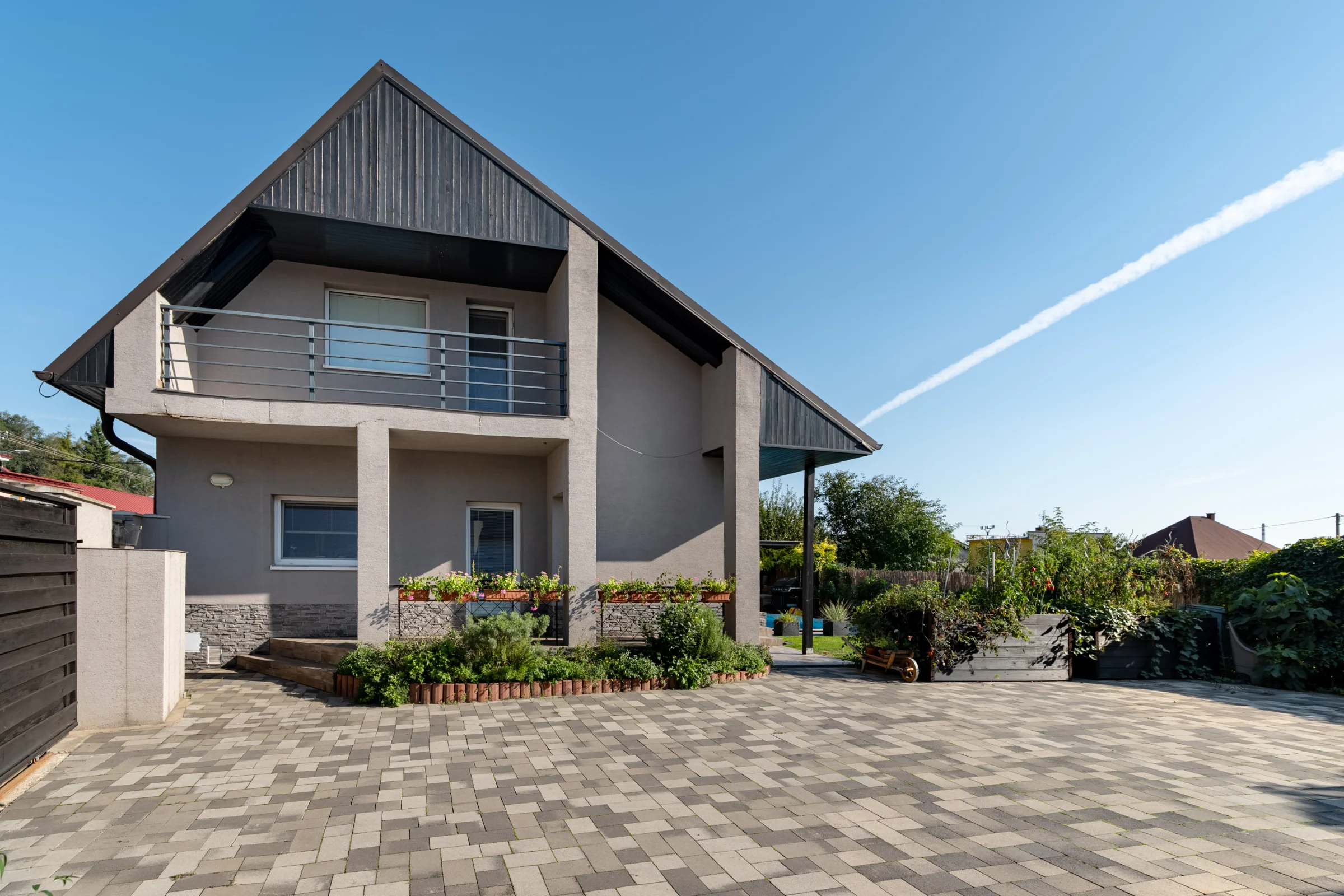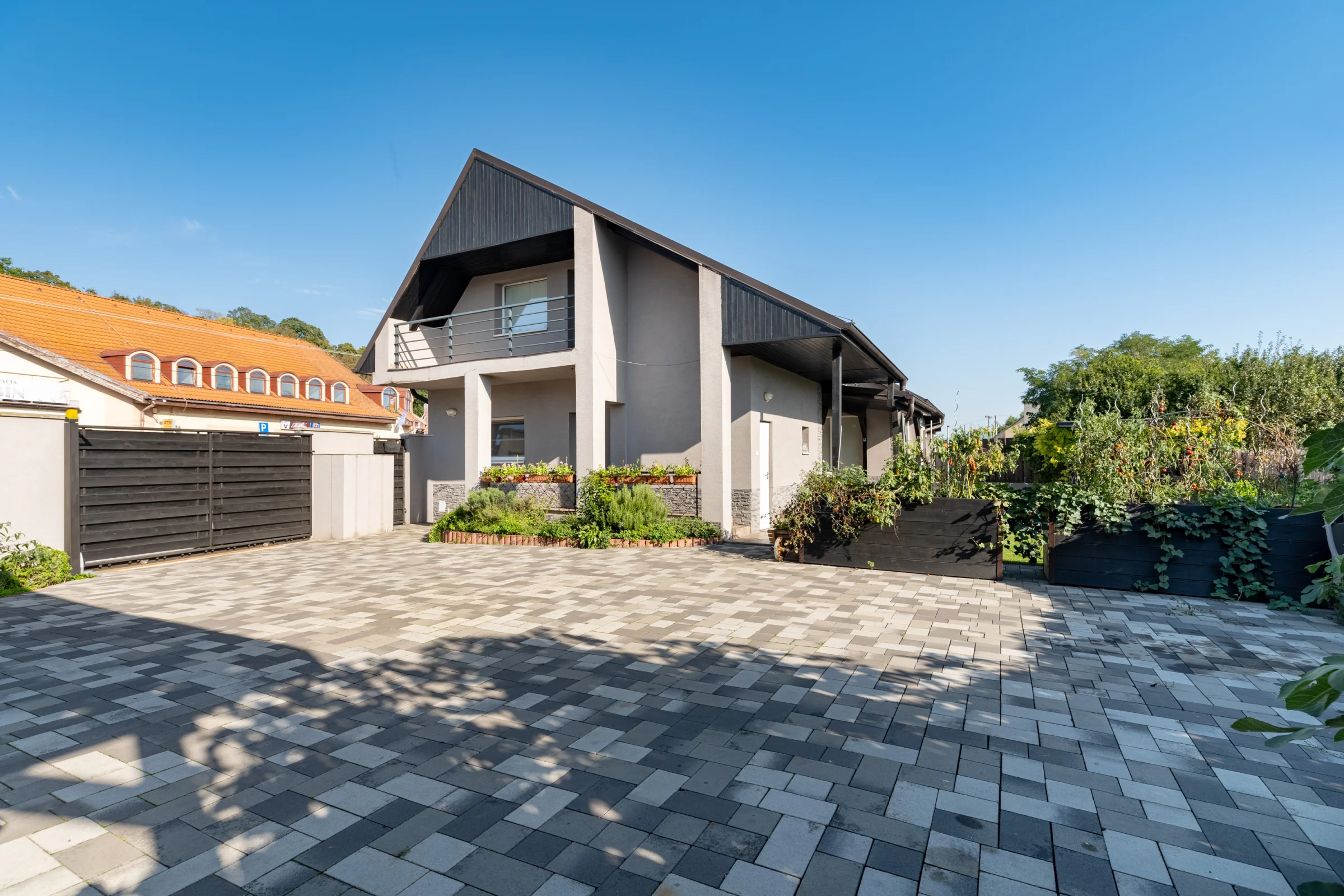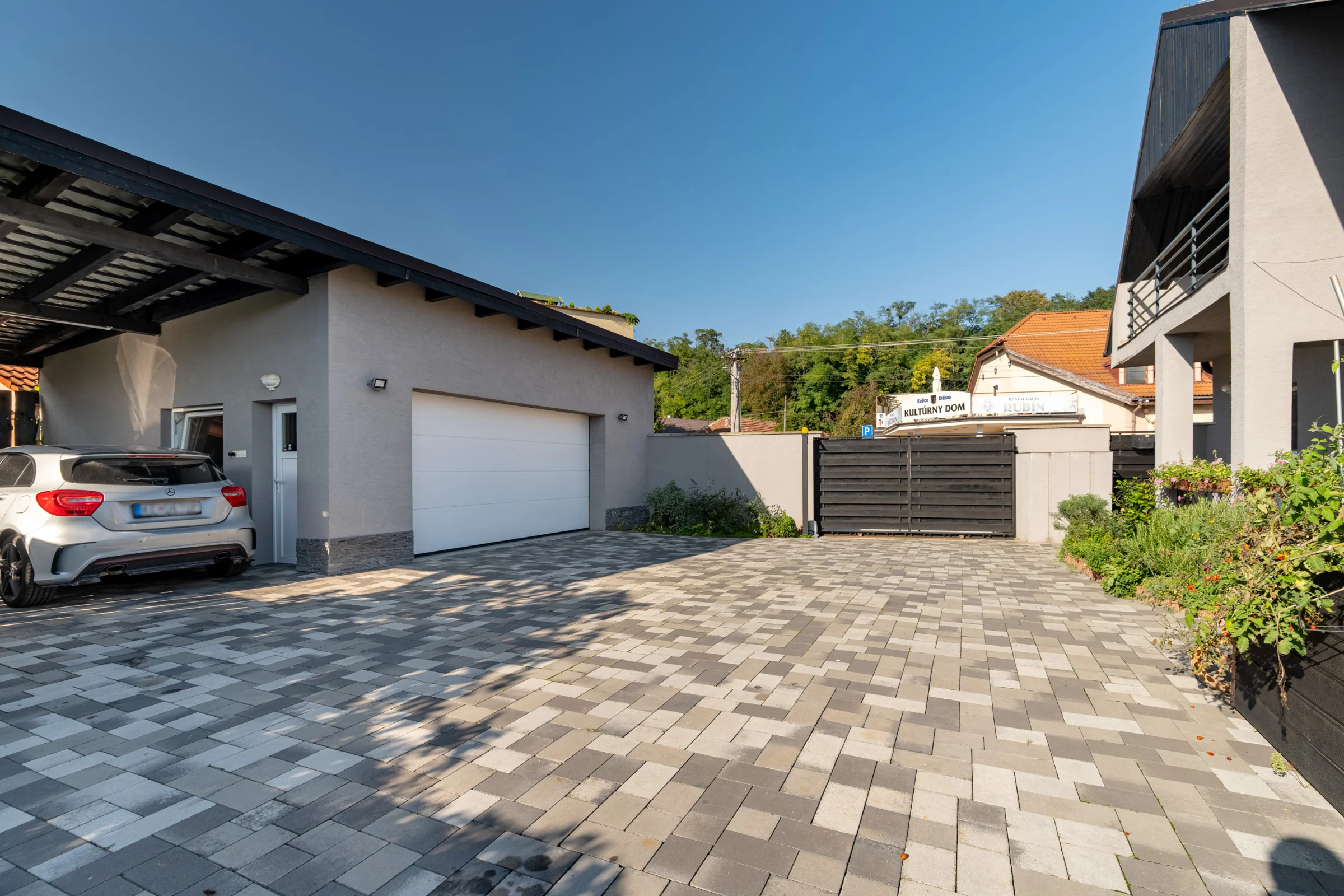 Vstupná elektrická brána a audiovrátnik s možnosťou ovládania a z pohodlia domova len podčiarkuje moderný prístup k pohodliu a bezpečnosti. Parkovanie pre niekoľko áut a premyslené rozmiesťovanie všetkých prvkov na pozemku dodáva domu jedinečný a dobre premyslený charakter. Tento dom je skutočne miestom, kde každý detail našiel svoje miesto.