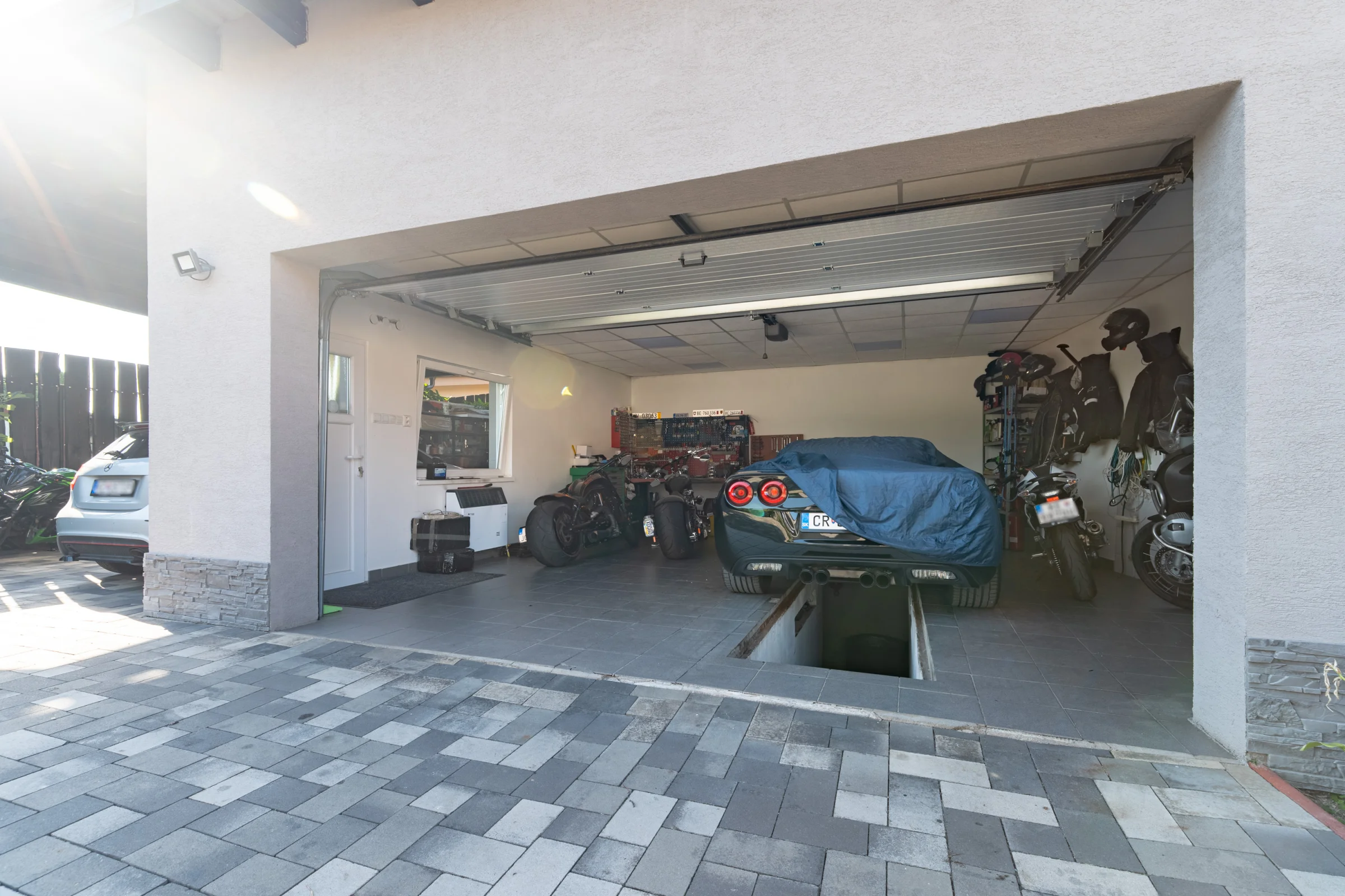 - Garáž: 41 m2 s montážnou jamou, elektrinou, a prístreškom